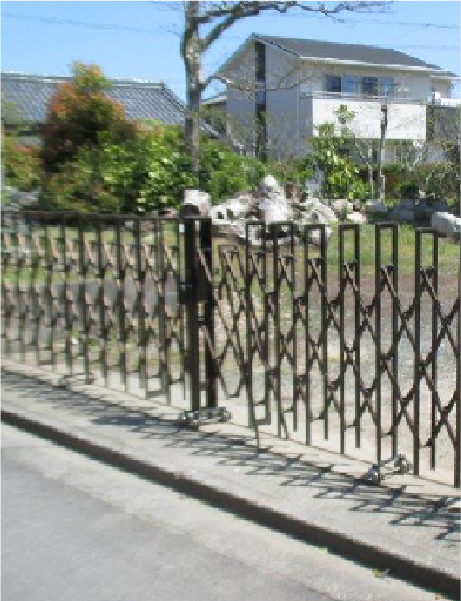 大型伸縮門扉の取替工事を行いました。門扉はガイドレール付